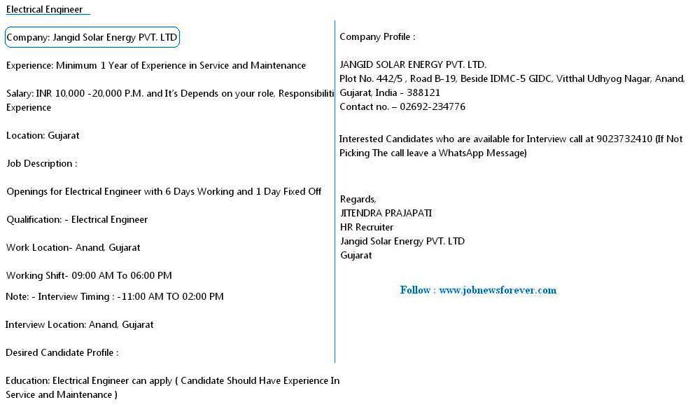 Current jobs in jangid solar energy pvt.