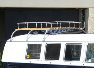 This is a new reproduction classic style westfalia wood slat roof rack for type 2 vw volkswagen bus.